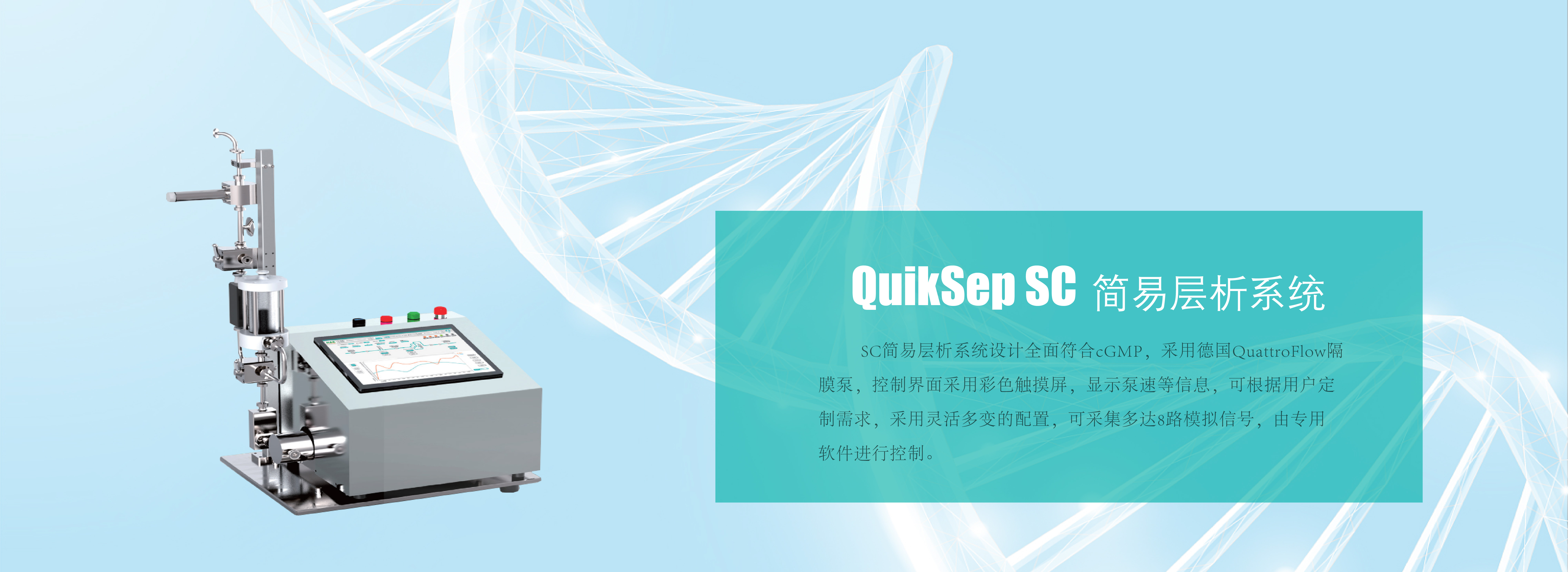慧德易QuikSep SC簡易層析系統(tǒng)是采用衛(wèi)生級隔膜單泵設(shè)計(jì),配合在線非接觸式超濾波流量計(jì),可在線監(jiān)測流量、UV、電導(dǎo)、pH、壓力、溫度,手動柱位閥、氣泡陷阱閥為由衛(wèi)生閥門,是為中試和工業(yè)級生物制品純化而專門設(shè)計(jì)的層析系統(tǒng)