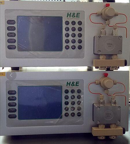 柱塞泵是目前液相色譜主流的輸液單元,特別是雙柱塞往復(fù)泵。它有一個精心設(shè)計的偏心凸輪,用同步電機(jī)或變速直流電機(jī)驅(qū)動偏心凸輪,偏心凸輪再推動兩活塞作往復(fù)運(yùn)動。偏心凸輪短半徑端所對應(yīng)的活塞向外伸,使該活塞的下單向閥打開吸入流動相,與此同時,偏心凸輪的長半徑端所對應(yīng)的另一活塞被推入,使其上單向閥打開,并將流動相送至色譜柱。具有操作方便、流速穩(wěn)定、壓力脈動小、故障率低的優(yōu)點(diǎn)。根據(jù)流量大小一般可分為分析型和制備型。