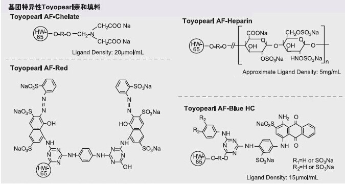 ?Toyopearl AF-Heparin HC-650M填料。肝素是線型的高硫酸化葡萄糖胺聚糖,具有抗凝血性能。由于其多陰離子性質(zhì),肝素能和廣泛的生物分子相互作用,包括血漿成分、脂蛋白脂肪酶、膠原酶和DNA聚合酶等。在親和層析中,固定化肝素被廣泛用作吸附劑來(lái)純化生物物質(zhì)。TOYOPEARL AF-Heparin HC-650M填料是一種高載量高親和力的吸附劑,具有優(yōu)良的化學(xué)穩(wěn)定性。