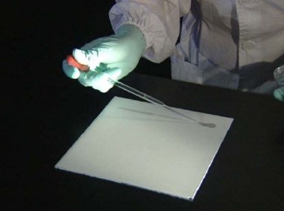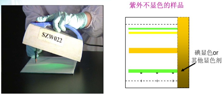 一看:首先在日光下觀察,劃出有色物質(zhì)的斑點位置