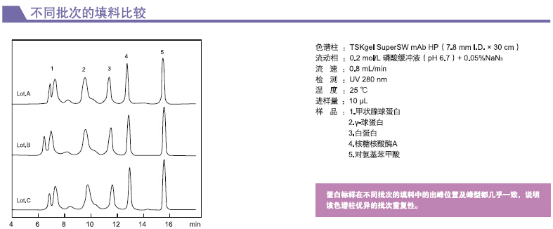 1. TSKgel SuperSW柱有內徑為4μm的顆粒,能實現(xiàn)最高分辨率。窄至4.6mm內徑的柱能在一定量的樣品質量范圍內提高高靈敏度。