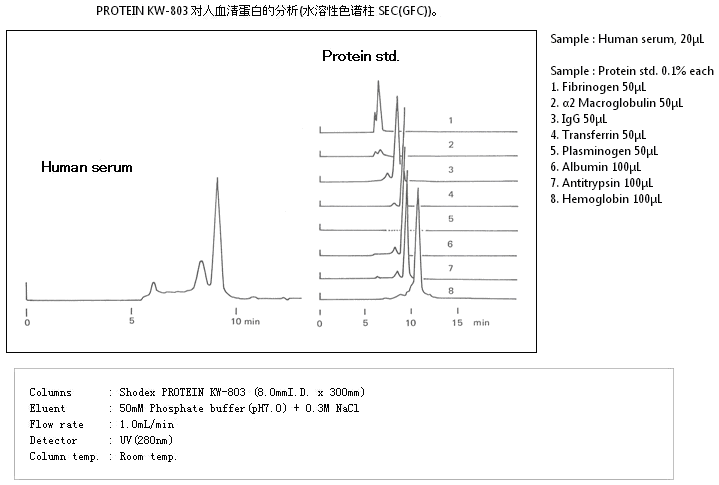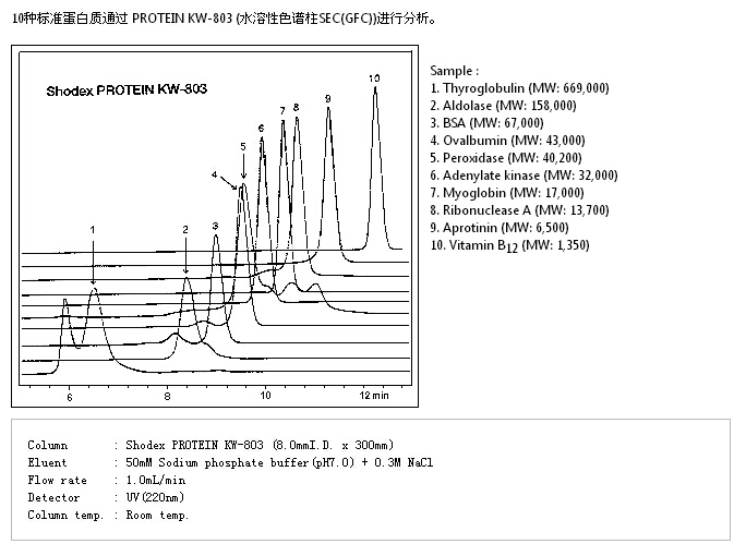 KW-803色譜柱是硅膠基質的水溶性SEC色譜柱,適用于蛋白質和酶的分析。