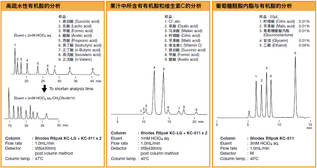 RSpak KC-811色譜柱是以聚苯乙烯-二乙烯基苯為基質(zhì)的。它是用離子排阻法進行有機酸分離的色譜柱。可用于柱后法(post column method)進行高檢測靈敏度分析。