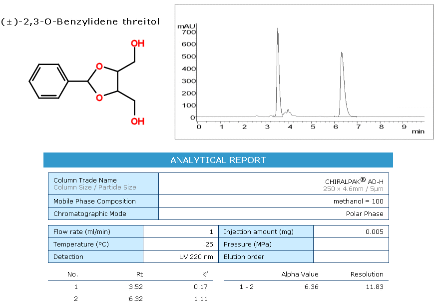 AD為多糖衍生物正相涂敷型手性色譜柱,硅膠表面涂敷有直鏈淀粉-三(3,5-二甲基苯基氨基甲酸酯)。AD為目前世界上使用范圍最廣的一種手性填料,在各類文獻中都報道了AD柱優秀的分離能力和耐受性。CHIRALPAK?AD-3 / AD-H /?AD適合在正相流動相中使用提供不同規格的常規分析柱,內徑為2.1mm的微徑柱,及不同內徑粗細的半制備柱、制備柱,您可根據實驗需要選擇合適的規格。