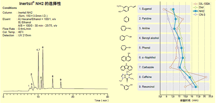 1.?????? 提供與Inertsil 正相色譜柱不同的選擇性。