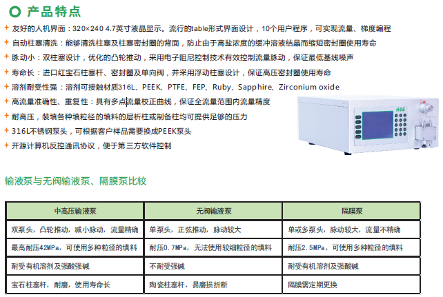 柱塞泵是目前液相色譜主流的輸液?jiǎn)卧貏e是雙柱塞往復(fù)泵。它有一個(gè)精心設(shè)計(jì)的偏心凸輪,用同步電機(jī)或變速直流電機(jī)驅(qū)動(dòng)偏心凸輪,偏心凸輪再推動(dòng)兩活塞作往復(fù)運(yùn)動(dòng)。偏心凸輪短半徑端所對(duì)應(yīng)的活塞向外伸,使該活塞的下單向閥打開(kāi)吸入流動(dòng)相,與此同時(shí),偏心凸輪的長(zhǎng)半徑端所對(duì)應(yīng)的另一活塞被推入,使其上單向閥打開(kāi),并將流動(dòng)相送至色譜柱。具有操作方便、流速穩(wěn)定、壓力脈動(dòng)小、故障率低的優(yōu)點(diǎn)。