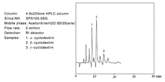 ? ? ? 糖類物質的分析和制備,在液相色譜領域占有重要的地位。迄今為止,大多數的分離介質僅僅局限在分析級別。但是富士硅膠研發出用于制備色譜的新的氨基硅膠。當使用高水相為流動相時,一般的氨基填料會暴露出很多問題。氨基硅膠的pH值很高,一般pH為9.0,在這樣高的pH條件下,目標化合物一般都會變性,并且會毀壞硅膠基質的表面。考慮到這些問題,富士公司研發出新的氨基硅膠填料,稱之為NH SG硅膠。NH SG硅膠可以最小化甚至是避免上述問題,并且對糖類化合物進行更好的分離。