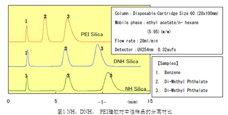 PEI是在球形硅膠表面鍵合大分子的氨基多聚物。富士的NH和DNH硅膠在分析和工業(yè)領(lǐng)域有著廣泛的應(yīng)用,主要用于分離堿性化合物,而這些堿性化合物在裸硅膠上會吸附的很嚴(yán)重。