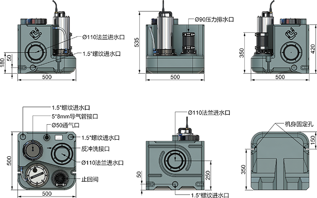 · 入水口:3×φ110,3×φ50,1×φ50/110